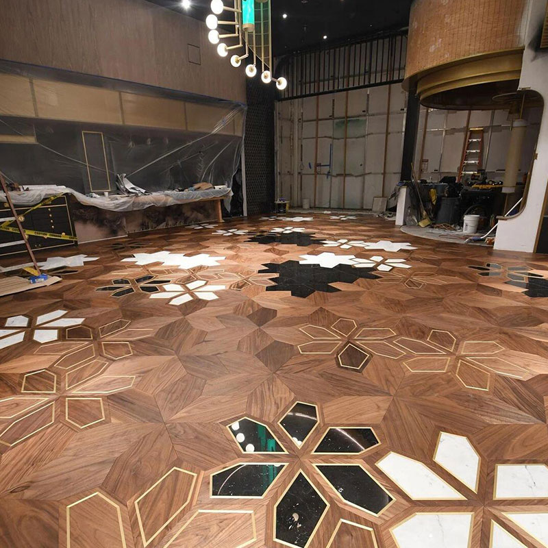 We prioritize environmental responsibility; this product complies with the highest ENF grade for formaldehyde emissions, ensuring a healthy living environment. The unique wire-brushed surface technique enhances the wood's natural texture while adding a tactile, anti-slip quality.As a factory direct supplier, we offer exceptional value and also provide customization options, such as inlaid marble accents, allowing you to create a truly unique floor.