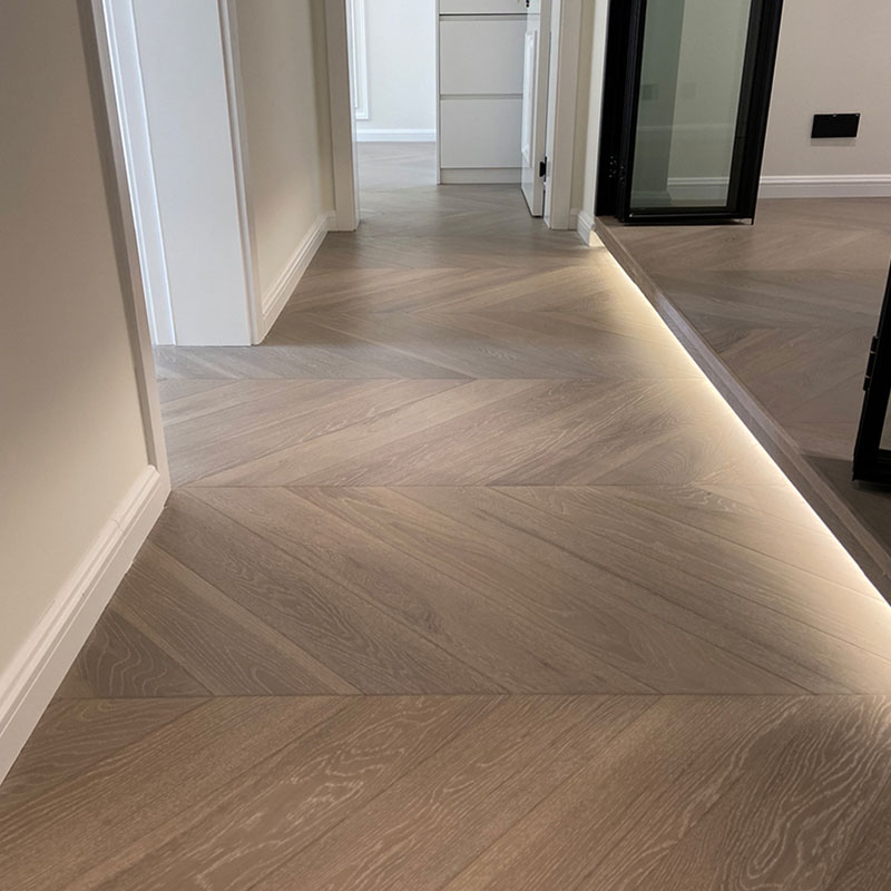 Meeting stringent ENF environmental standards, the product ensures healthy indoor air quality while delivering the warm, natural aesthetic of solid wood. As a factory-direct offering, it makes this sophisticated herringbone pattern accessible for residential and commercial projects seeking both style and substance.